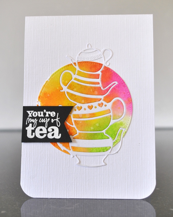 Cardstock; wit en zwart, en watercolor papier, distress ink, die kopjes poppy stamps, witte embossingpoeder, sentimentstempel verve stamps, cirkeldie my favorite things.